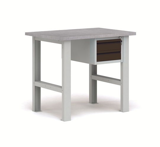 Металлические слесарный верстак ВП-Э представляет собой рабочий стол для ручной обработки металлических, деревянных изделий, а также предметов, выполненных из других материалов. Металлический верстак используется в мастерских, гаражах, автосервисах и в других рабочих зонах. Он являются основой, как небольшого промышленного производства, так и крупного предприятия. Допустимая равномерно распределенная нагрузка на верстак - 500 кг, на ящик- 30 кг. В комплект верстака ВП-Э входит: столешница СТ-1 из МДФ, покрытая оцинкованным листовым металлом, комплект К-1Э (две верстачные металлические опоры), одна подвесная тумба Т-ВП-Э с одним выдвижным ящиком. Размер тумбы (ВхШхГ) 280х380х630 мм. Дополнительно на верстак можно установить два перфорированных экрана соответствующего размера, аксессуары на экран. Цвет: верстак - серый Ral 7035, лицевая панель ящика черный муар Ral 7021