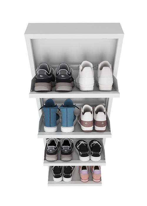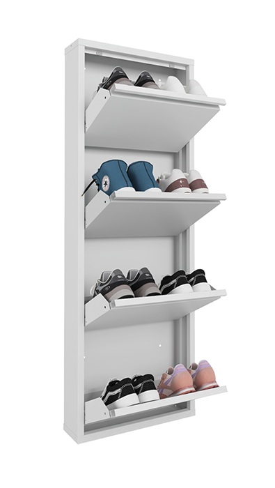 Обувница Практик ОМ-4 белая предназначена для хранения обуви. Обувница состоит из четырех отделений, каждое отделение вмещает 2 пары обуви (до 43 размера). Изготовлена из стали, поставляется в собранном виде. Цвет: белый Ral 9003. Тип покрытия: порошковое