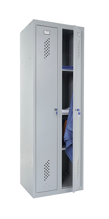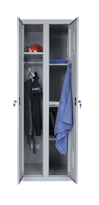Шкаф для раздевалок усиленный Практик ML 21-60U предназначен для хранения сменной одежды в производственных, спортивных и других помещениях, а также для организации камер хранения. Представляет собой сборно-разборную жесткую конструкцию, усиленную сварной рамой. Собирается в вертикальном положении при помощи зацепов и саморезов. Специальные элементы боковых креплений на боковой стенке позволяет наращивать ряд модулей любой длины. Все модули серии ML совместимы между собой. Шкаф МL 21-60U оснащен улучшенной вентиляцией на дверях и задней стенке. Шкаф разделен на две секции. Одна секция комплектуется полкой для головного убора и перекладиной для вешалок и крючками. Вторая секция комплектуется 4 полками. Двери закрываются ключевым замком Практик (2000 комбинаций). Открывания дверей правостороннее или левостороннее. Цвет: серый-полуматовый (Ral 7038). Возможен окрас в другие цвета из палитры производителя. Дополнительная опция: замок PL (вместо ключевого замка устанавливается бесключевой замок Euro-locks A129 с устройством под навесной замок). Поставляется в разобранном виде.
